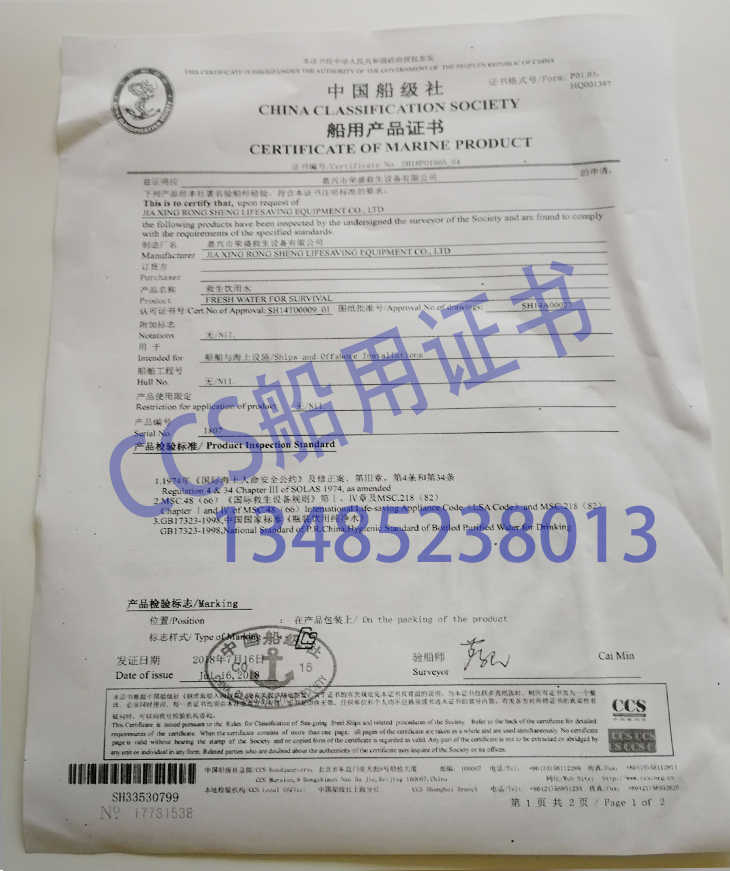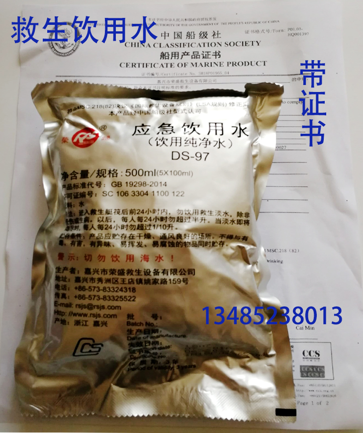 Life-saving drinking water emergency fresh water bag Sea fresh water camping camping life raft with fresh water 500ml bag
