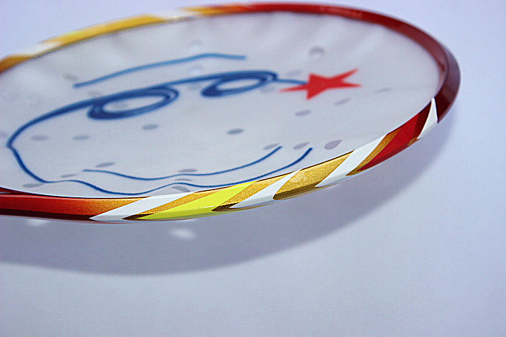 One shot, one orange ball, one disc (thin handle), one shot, one blue ball, one disc (thin handle), one pat, one shot, one orange ball, one disc (thin handle), one beat, one blue ball, one disc (thin handle), one beat, one blue ball