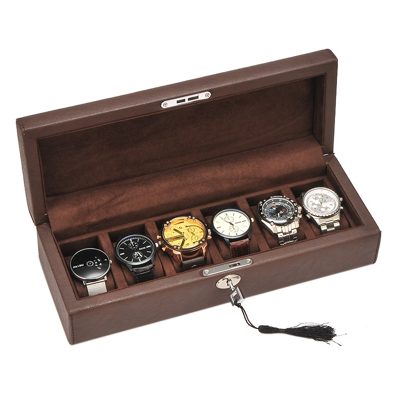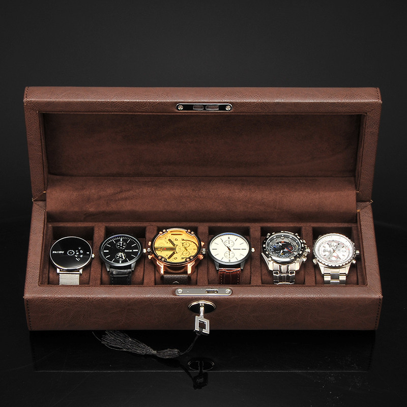 Livery brand new PU Watches Box Goat Leather Striped Leather leather Watch Containing Box Watches Collection Box Watches Box 6 Meters With Lock