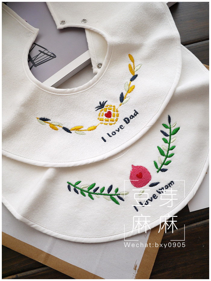 Baby 360 rotating embroidery wreath I love mom and Dad Cotton saliva towel Bib Bib fake collar