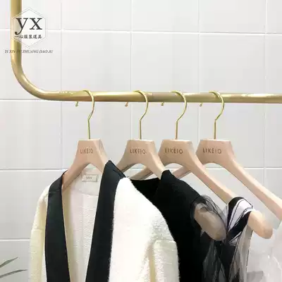 Paint-free beech non-slip solid wood hanger wood hanger natural color men's and women's clothing store gold hanging long hook LOGO customization