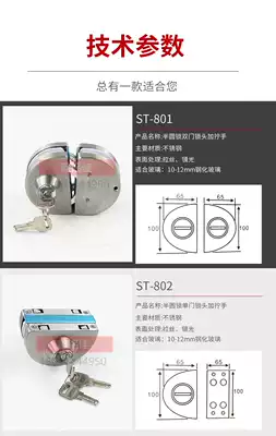 Glass door lock Push-pull glass lock double door drilling-free stainless steel shop central lock Single door double door lock