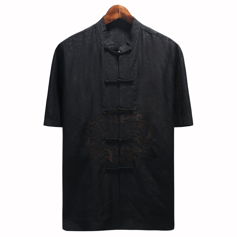 Fragrant Cloud Yarn Middle Aged Tang Dress Man Short Sleeve Summer China Wind Hanfu Men's Shirt Elderly Grandpa Fitted Clothes