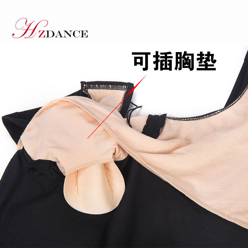 Ballet practice Black short sleeve can be inserted chest pad body gymnastics conjoined air yoga adult female