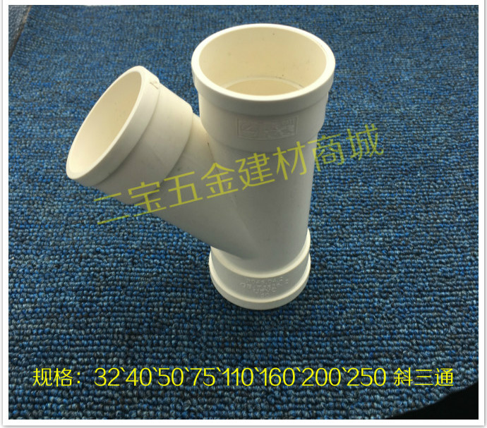 Male plastic PVC drainage pipe heterodiameter 45 degrees inclined tee tee 90 45 degrees tee 90 inclined tee Y type three-way thickening type