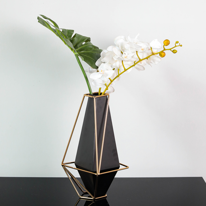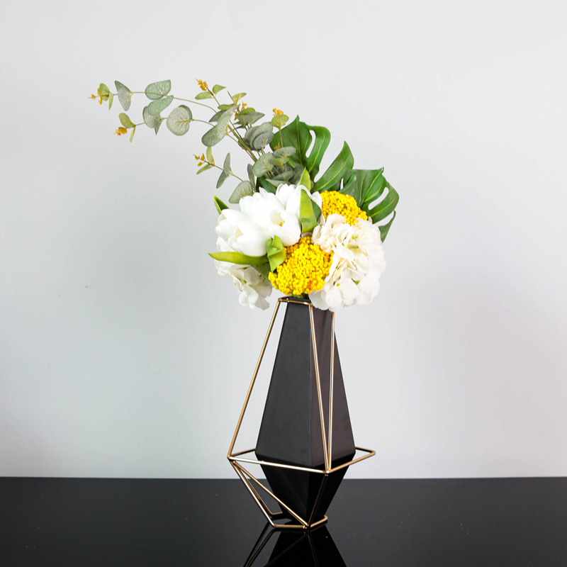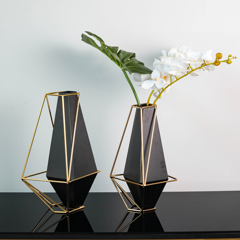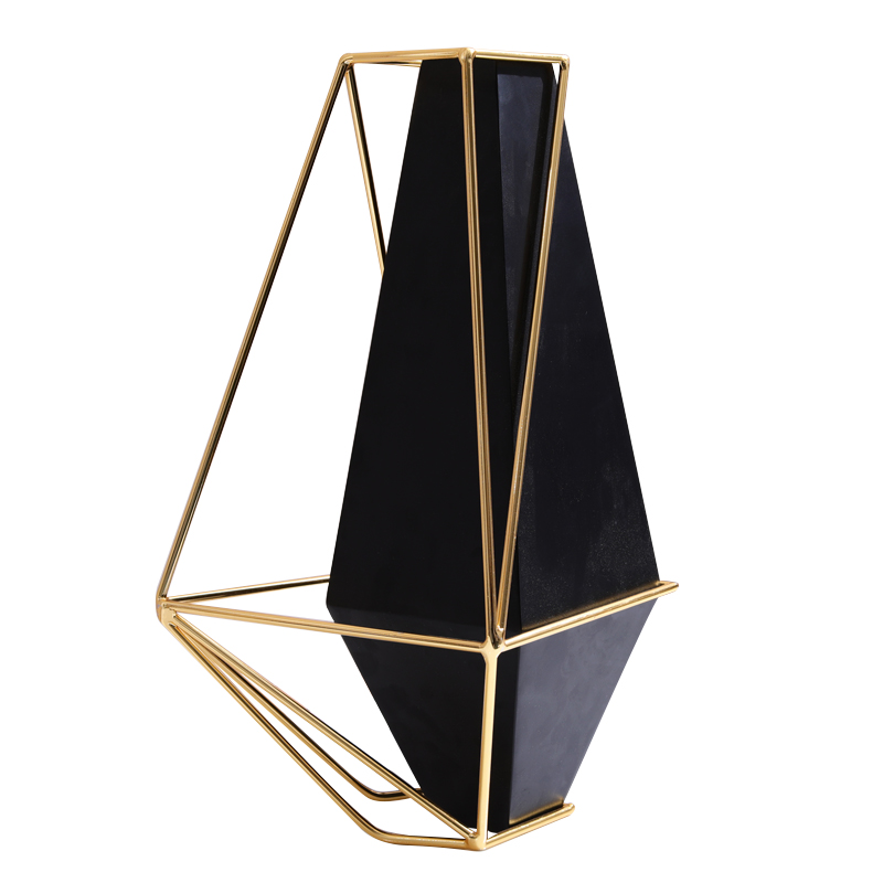 Geometric black metal vase in the shape of a