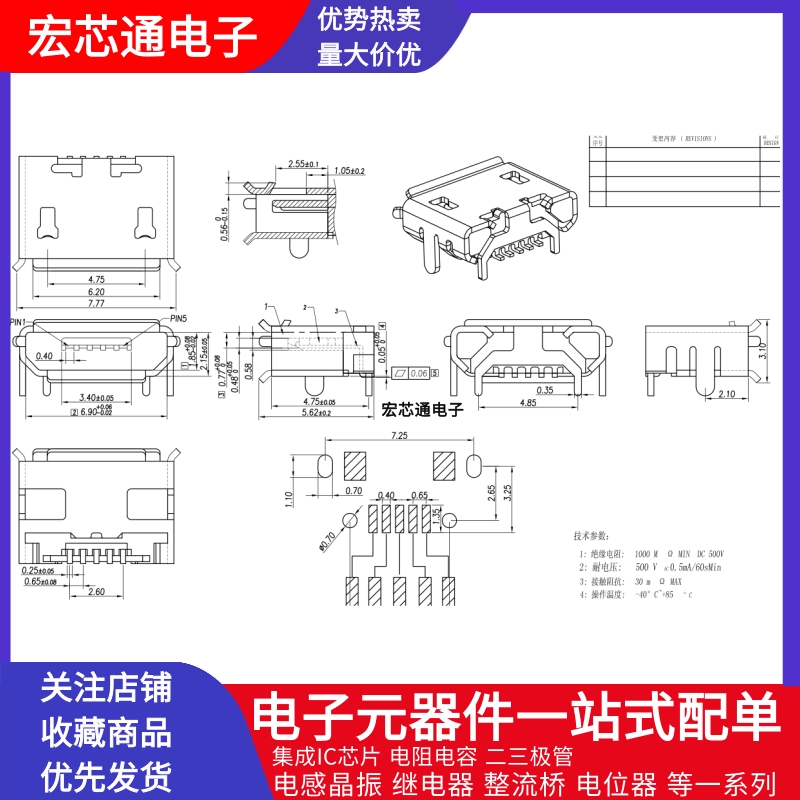 McHorn without curbside Micro USB socket 5-pin 5pin four-foot plug-in connector choreographer-Taobao