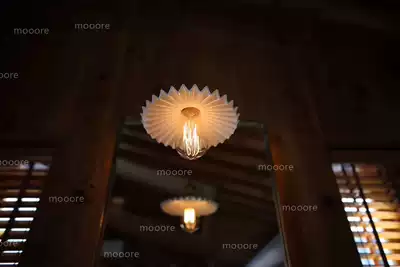 Mooore Nordic brass simple creative retro white ceramic pleated single head Japanese B & B bar chandelier