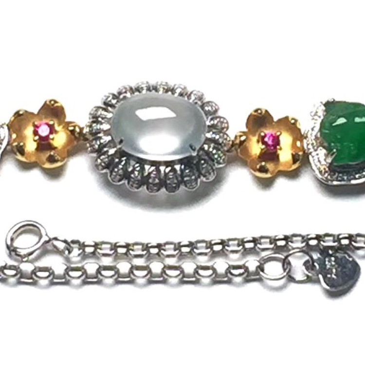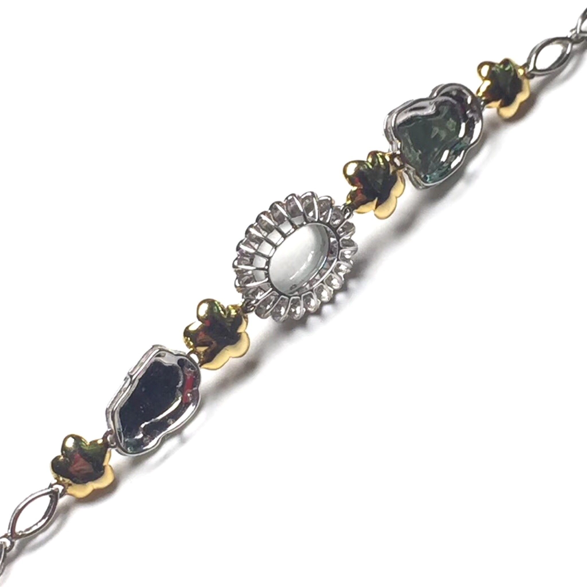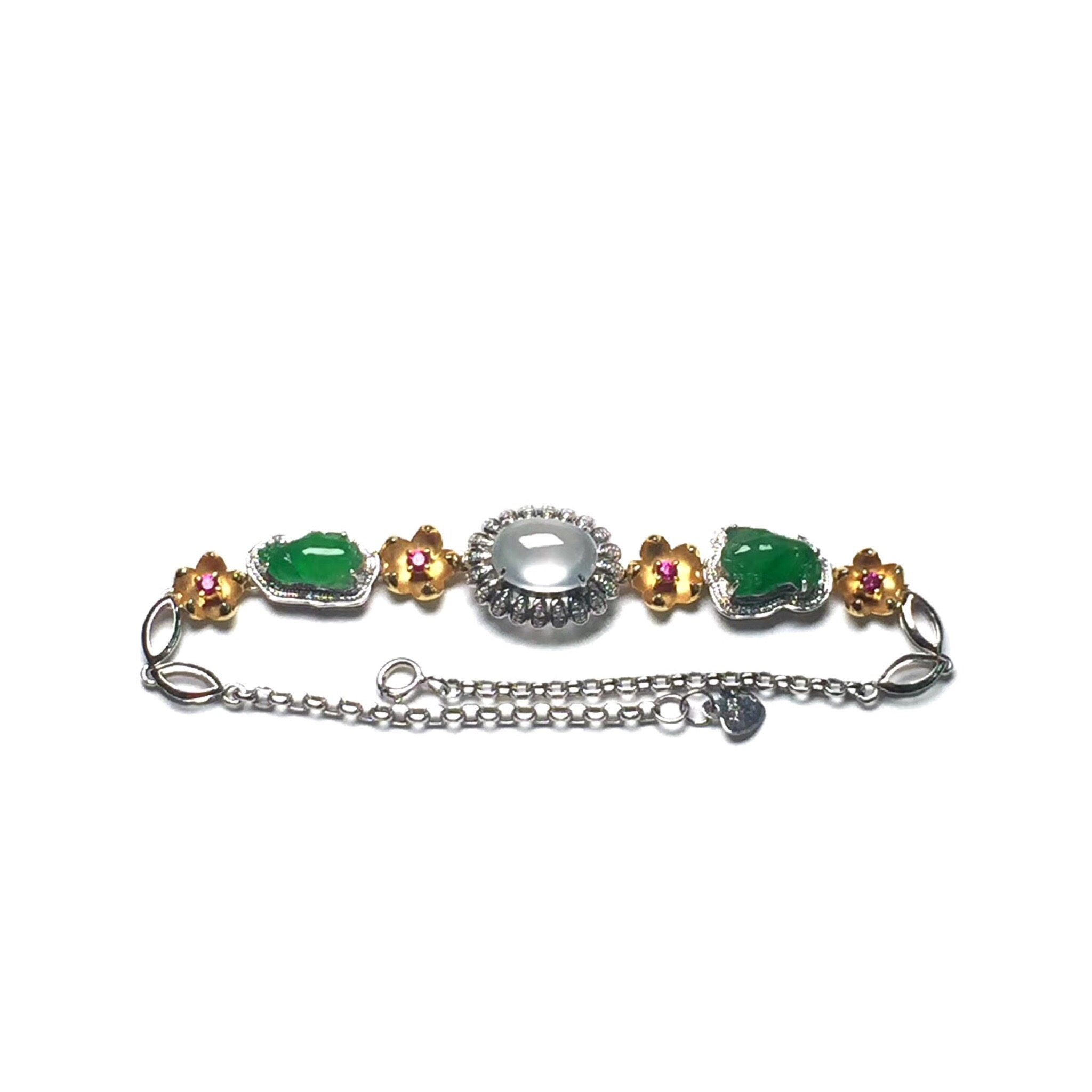 Live Jade gold inlaid jade bracelet Myanmar A goods full of green ice plant fluorescent floating flower jade jewelry