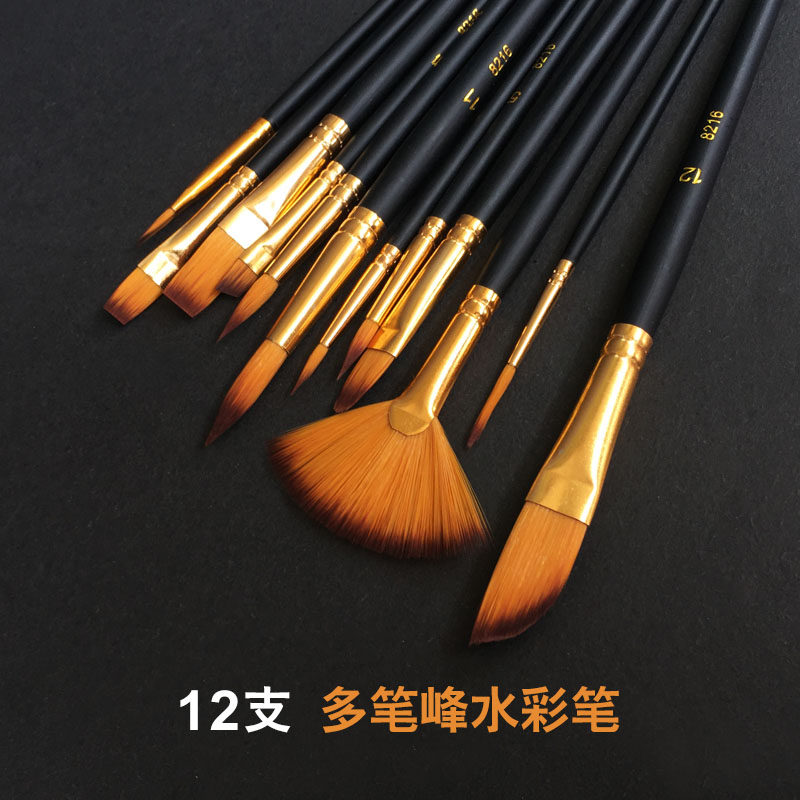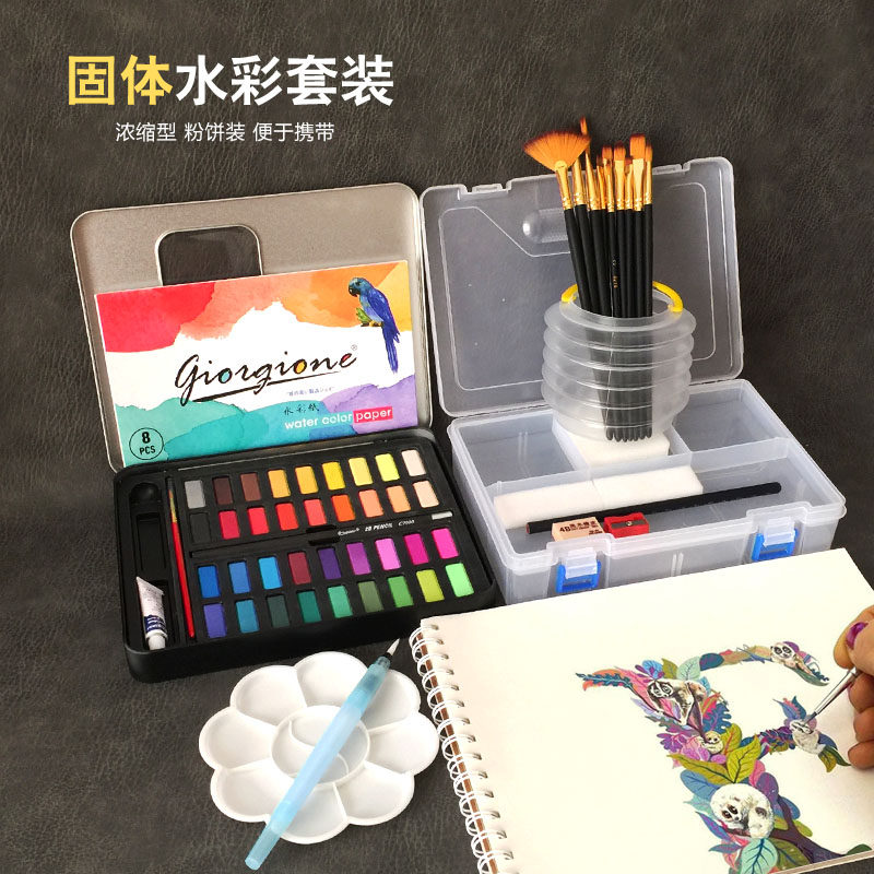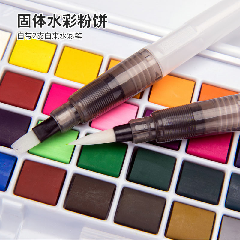 Solid watercolor paint set beginners single-piece Fountain Pen fan-shaped brush art storage box multi-peak oblique peak round water color pen portable watercolor set concentrated watercolor painting