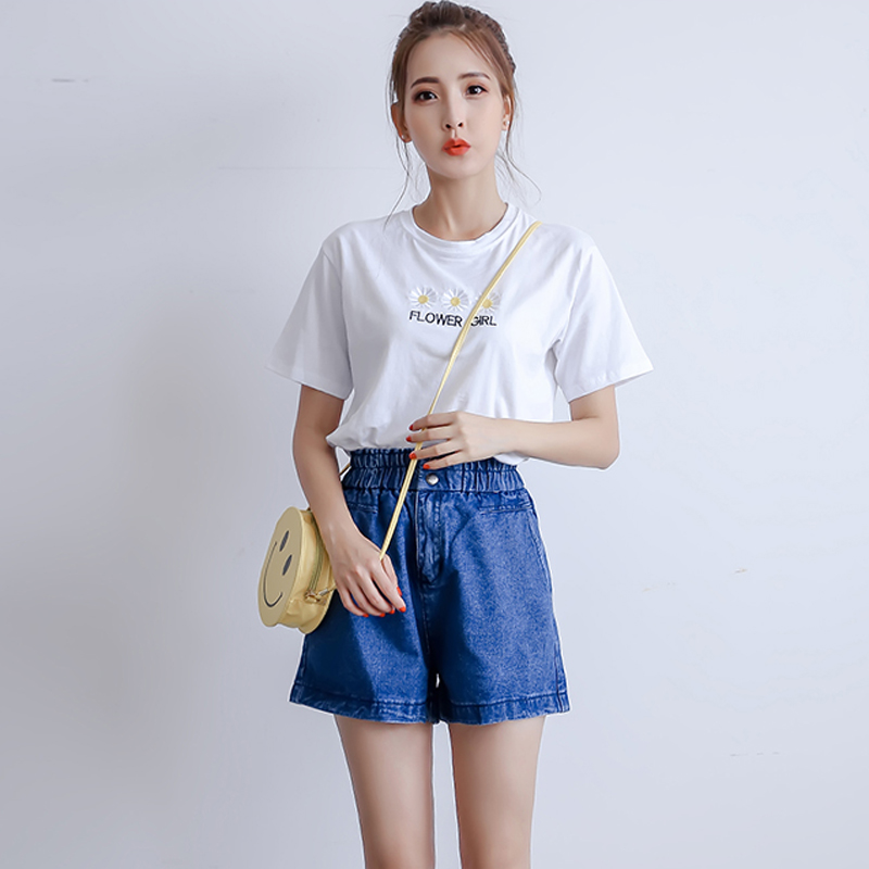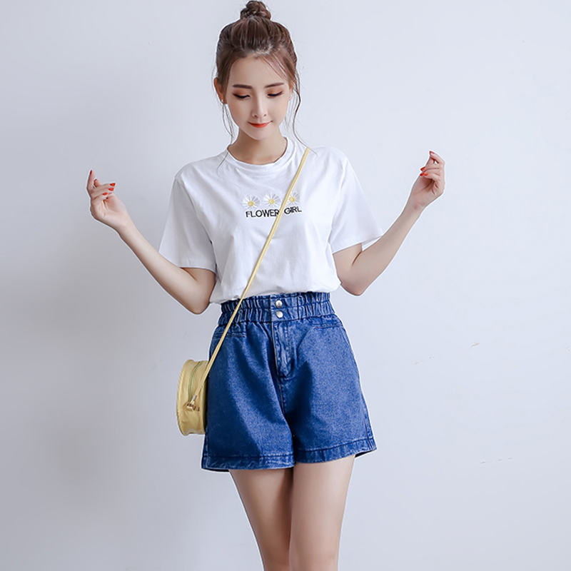 Summer Broadleg Pants Suit Girls Spring Summer Dress Junior High School High School Raw Denim Shorts Casual Fashion Two Sets