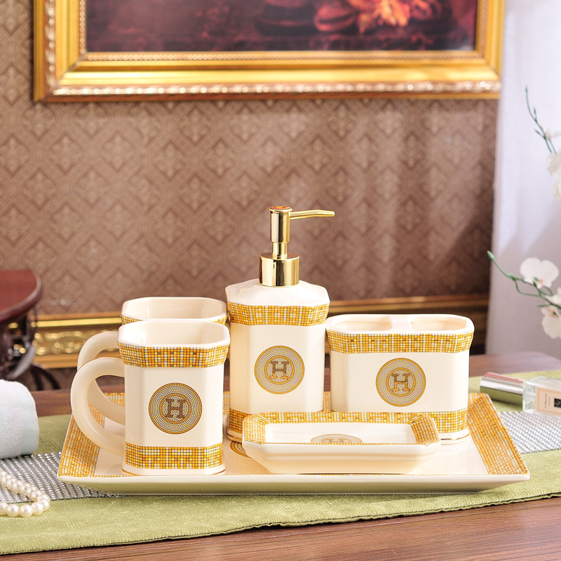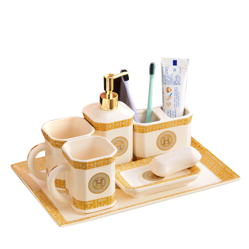 European ceramic bathroom five-piece set six-piece set new Chinese wash set tooth rack rinse cup tooth brush cup
