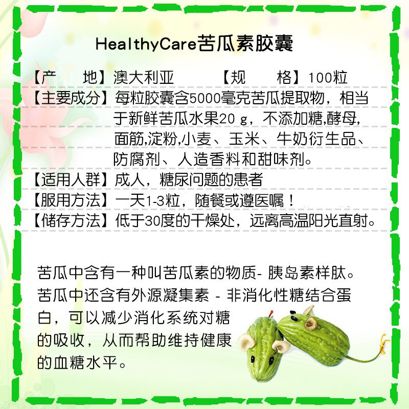 Australian Healthy Care HC Bitter Melon Essence Capsule 100 Capsules to Promote Health Pot Assistant