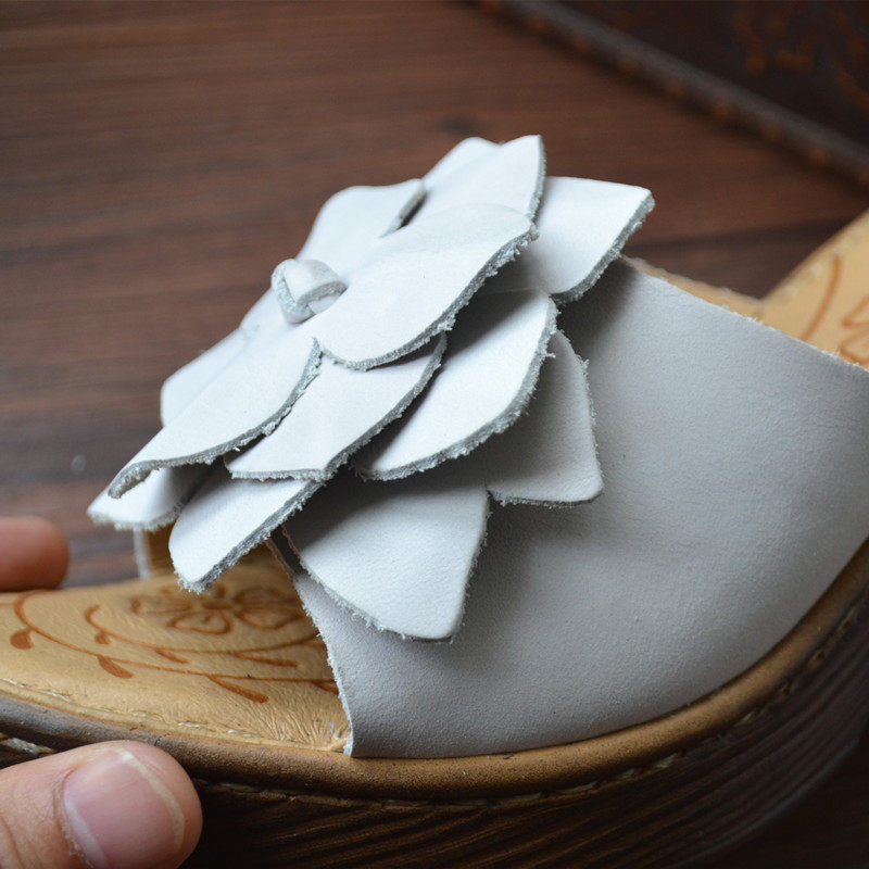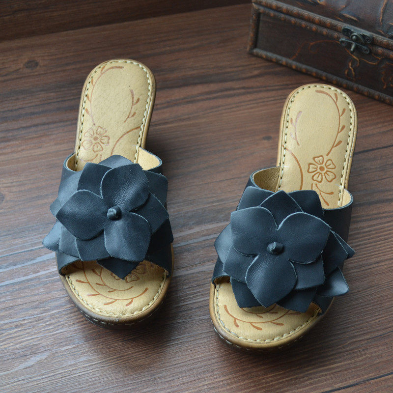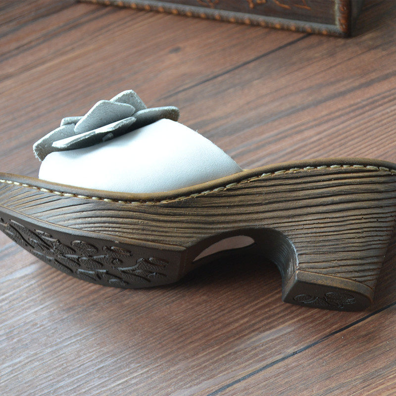 Original handmade leather high-heeled women's slippers retro flowers open-toed sandals and slippers outdoor slip-on foreign trade tail goods summer