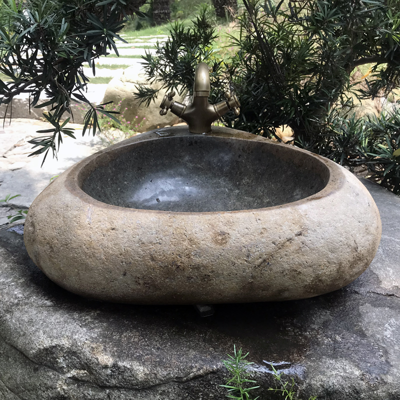 Pebble washbasin Outdoor rough stone table basin Courtyard sink Creative garden washbasin Vintage art basin
