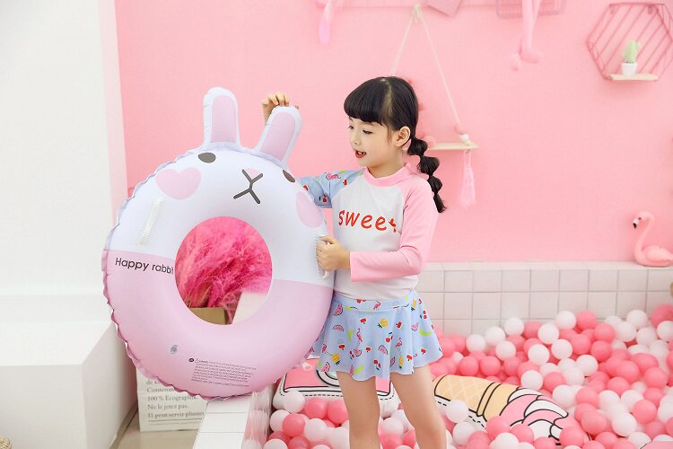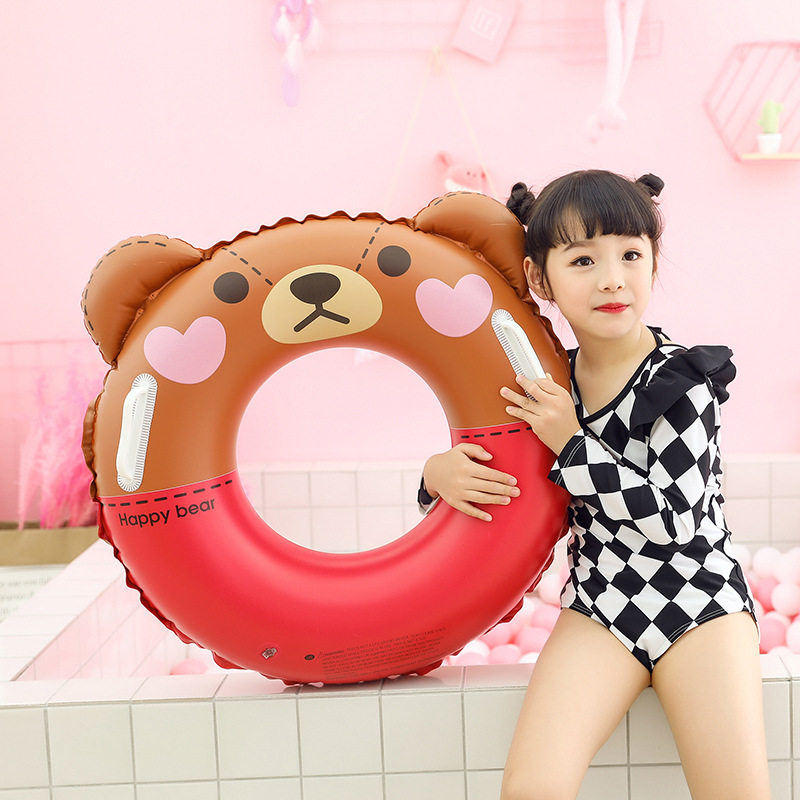 The new ins net red inflatable brown bear Kenny rabbit children's swimming ring thickened lifebuoy 3-10 years old playing in the water