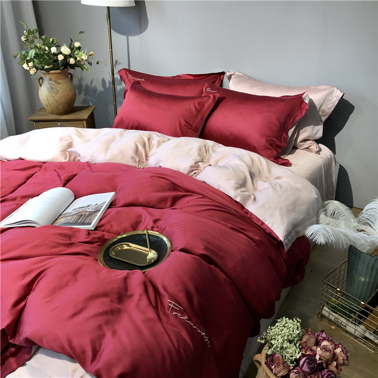 Extremely Minimalist Collage of 60 Encrypted O Ground Lilan Fine Bifacial Sky Silk Four Sets Naked Sleeping Bump Color Bed Bedding-Taobao