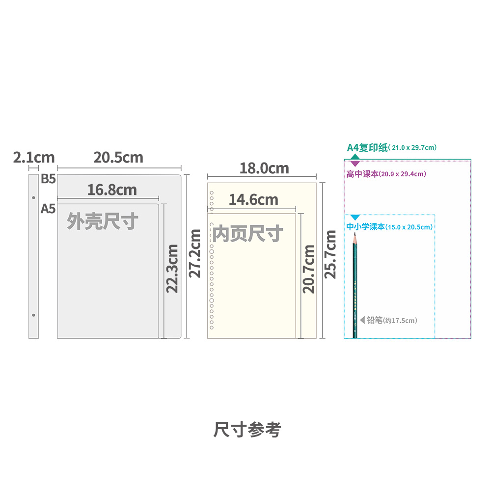 Daolin metal clip shell A5 transparent B5 loose-leaf book 60 pages 80g paper horizontal line English four lines three grid blank square grid student notebook notes detachable core 20 stationery 26 holes