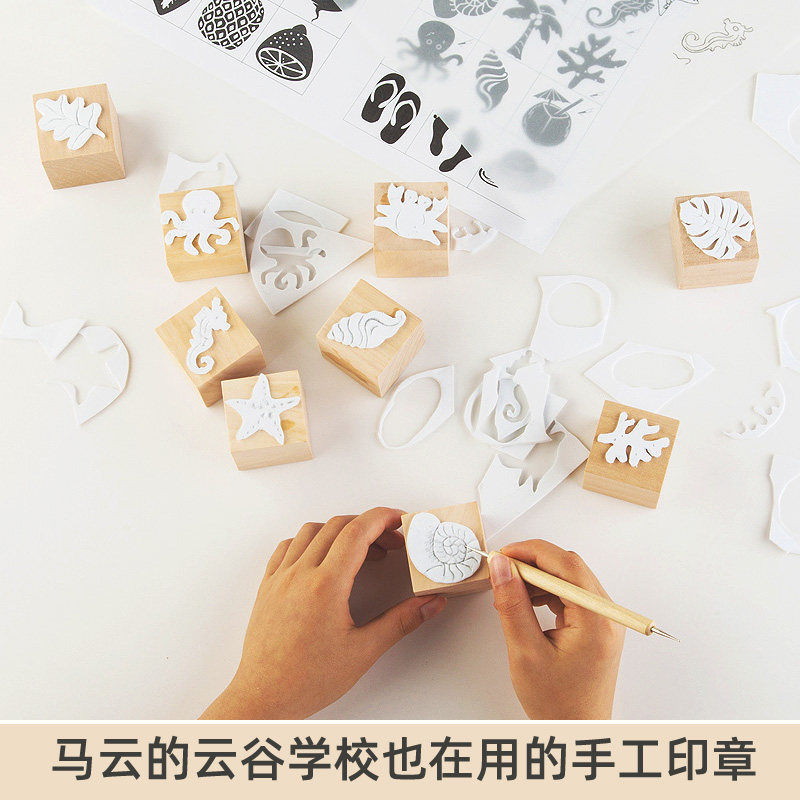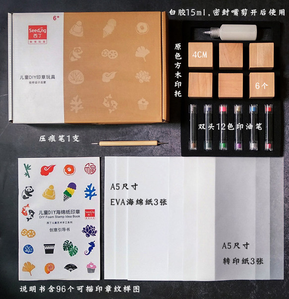 Seal suit 6 (full 39) Inprint oil pen bicolor pen 6 branches (color random) modern wind fit color 4 color printing table wood 4X4cm1 block indentation pen 4 support for EVA A5 3 Zhang turns