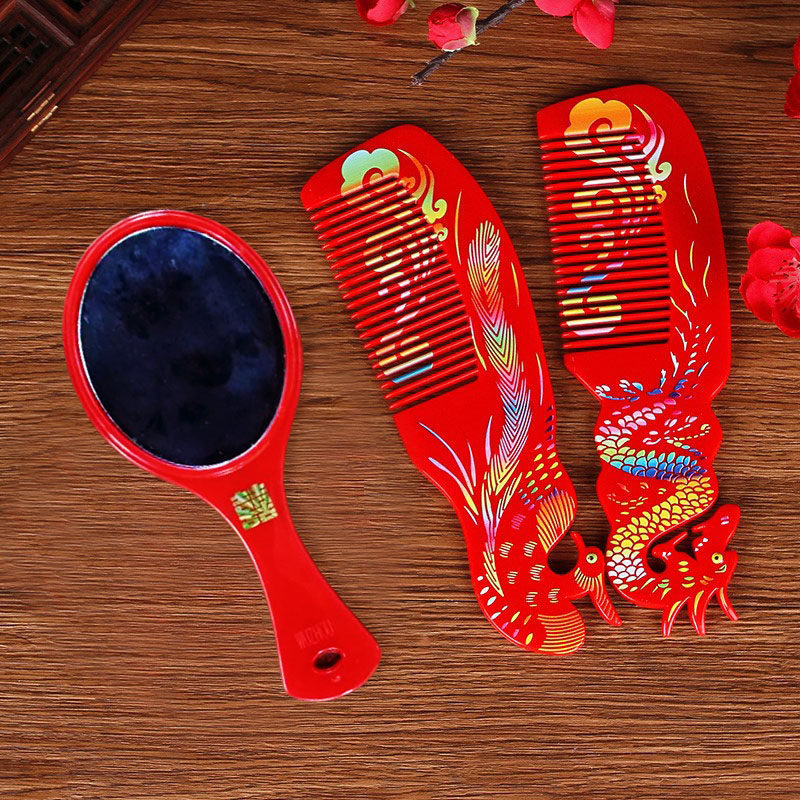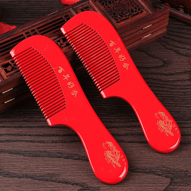 A pair of wedding red combs, a pair of wooden combs, household mahogany combs, gift boxes, wedding dowry, newcomer supplies