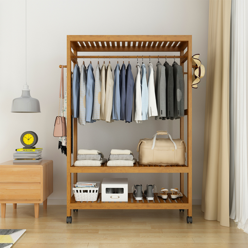 Simple hanger floor-to-ceiling bedroom hanger Modern Nanzhu floor-to-ceiling hanger Simple coat rack floor-to-ceiling solid wood