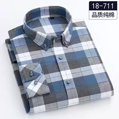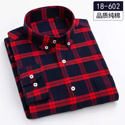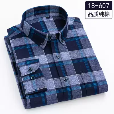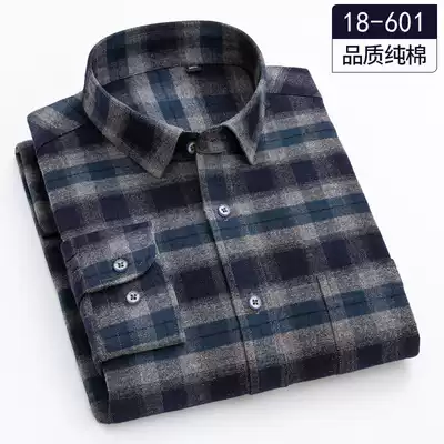 Autumn cotton shirt men's long-sleeved brushed large plaid youth casual inch clothes Korean slim men's cotton shirt