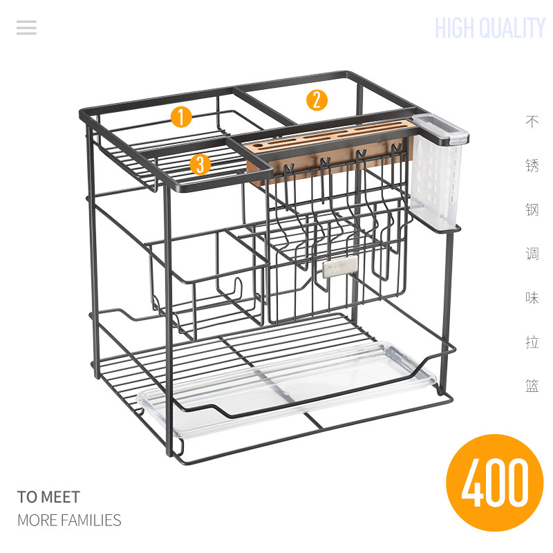 Ou Lin kitchen cabinet pull basket black stainless steel drawer type bowl rack bowl basket double dish seasoning basket damping