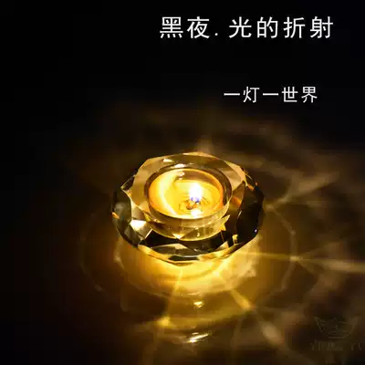 Transparent white crystal diamond candle holder high temperature resistant household ghee lamp holder Buddha lamp lamp light round bar home pendulum