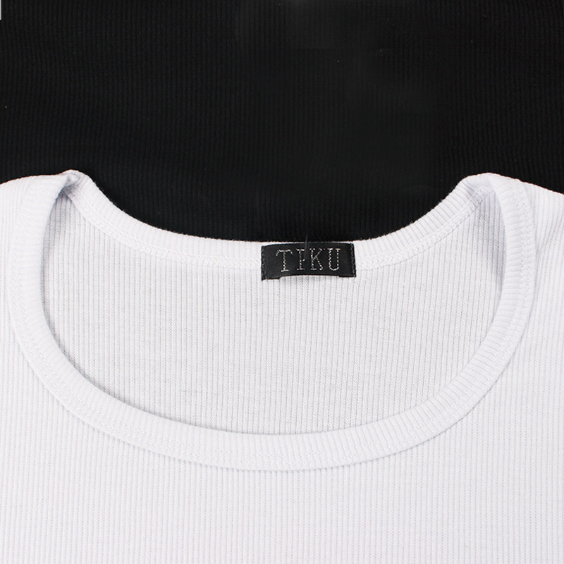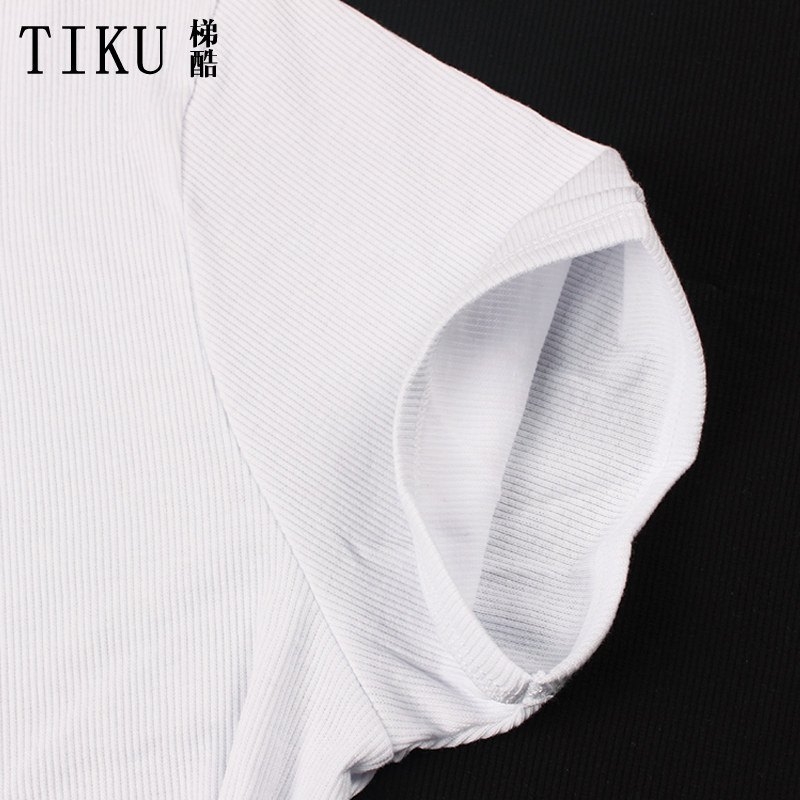 TIKU ladder cool men's threaded cotton round collar knitted short sleeves breathable body fitness T-shirt youth handsome