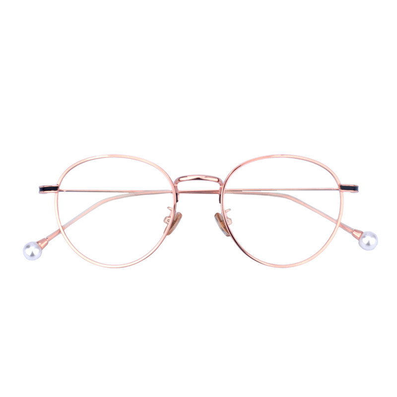Rose gold metal vintage spectacle frame pearl net red same silver myopia glasses frame round frame radiation protection