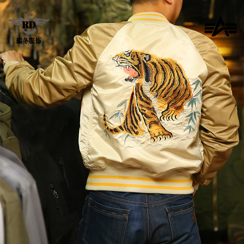 Alpha Industries ALPHA Outdoor MA1 Gold Tiger Limited Edition MA-1 Embroidered Commemorative Bomber Jacket Men