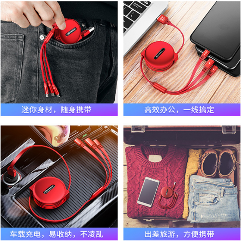 One-to-three data cable telescopic three-in-one charger mobile phone multi-function gift exhibition custom logo lettering
