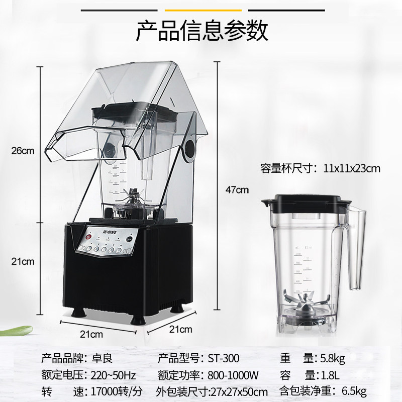 Zhuliang Ice Sand Machine Commercial Milk Tea Shop Muted With Hood Soundproof Hood Ice Sand Machine Crushed Ice stirring cuisine Juice Extractor