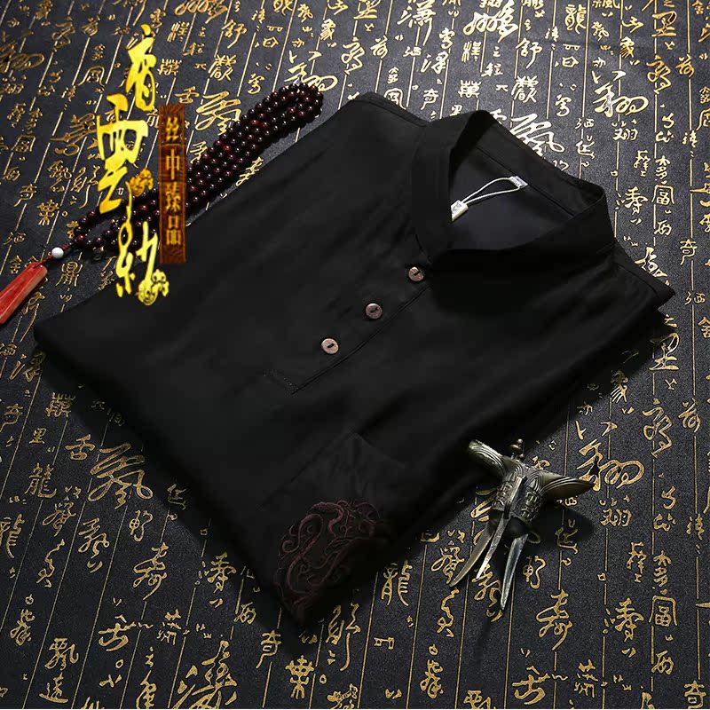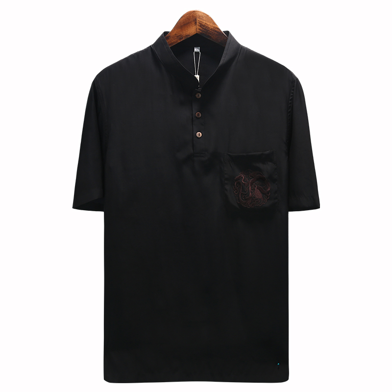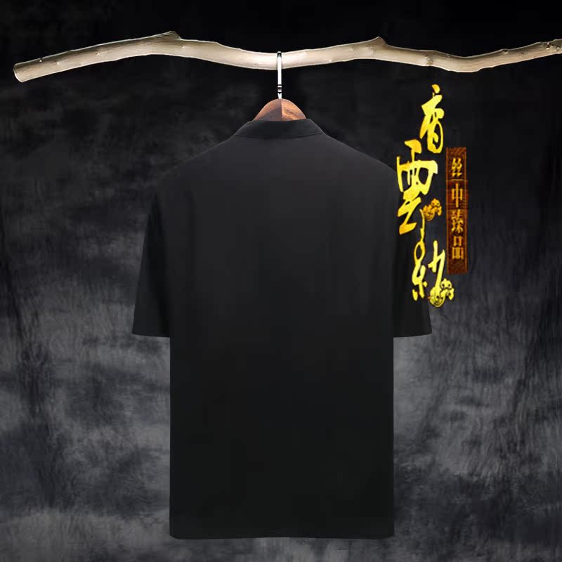 Real silk satin men's mulberry silk shirt men's short-sleeved shirt Xiangyunsha stand collar Dad Tang suit men's summer T-shirt