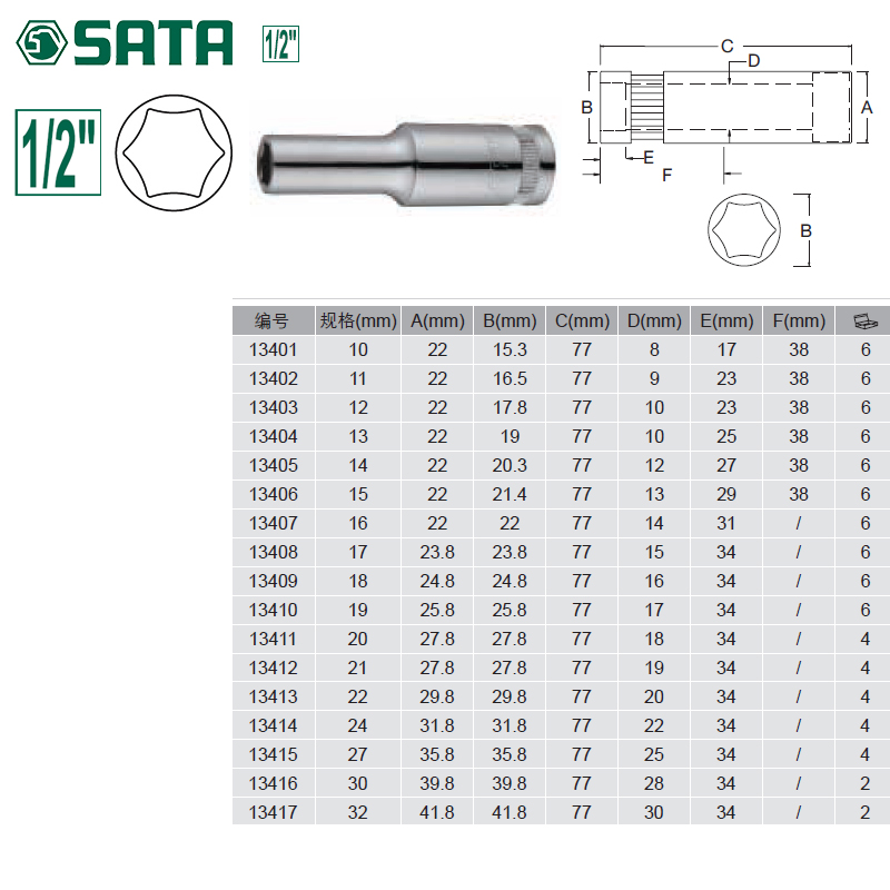 13401 10mm Extended big fly socket head 13402 11mm Extended big fly socket head 13403 12mm Extended big fly socket head 13404 13m