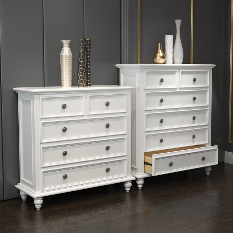American country solid wood chest of drawers locker cabinet white four-drawer chest of drawers European-style furniture simple storage