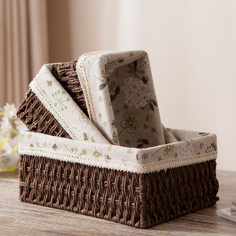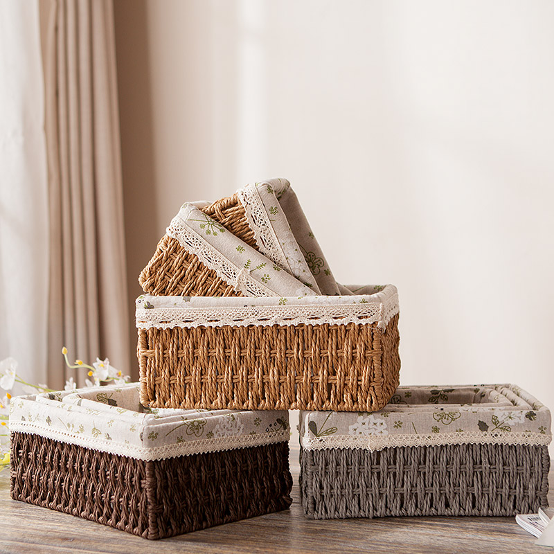 Desktop containing box Cosmetic Containing basket Living Room Tea Table Woven Basket Key Debris Remote Control containing basket
