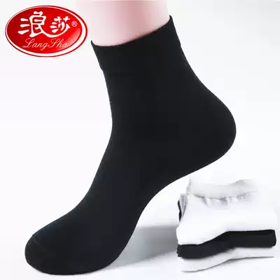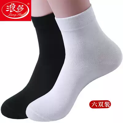 Langsha socks men's spring and autumn tube socks sweat-absorbing and deodorant pure cotton men's stockings white pure black breathable cotton socks