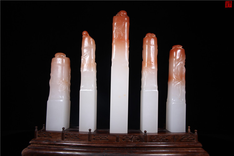 Collection of high-quality Laokeng Huanglong Jade Seals A set of five consecutive chapters and chapters, and the rich and Jiafang seal engraving seals
