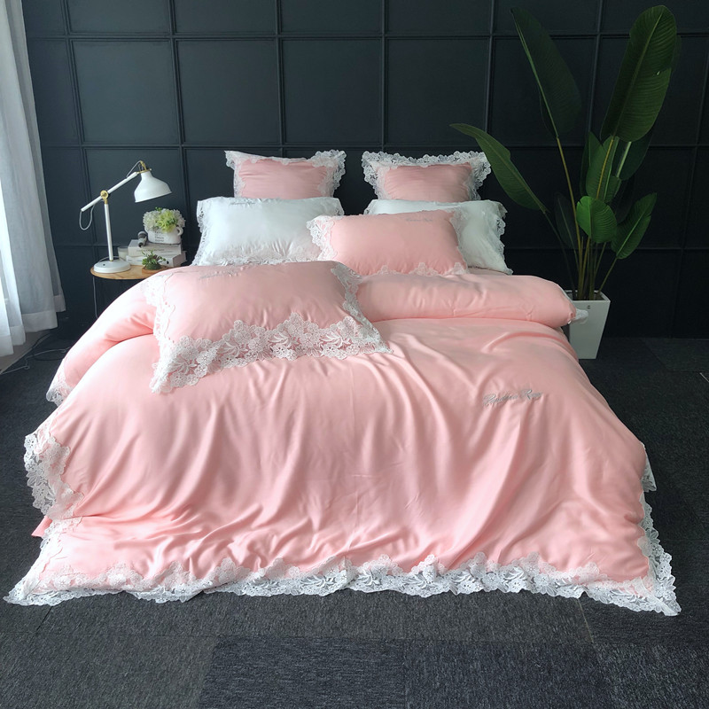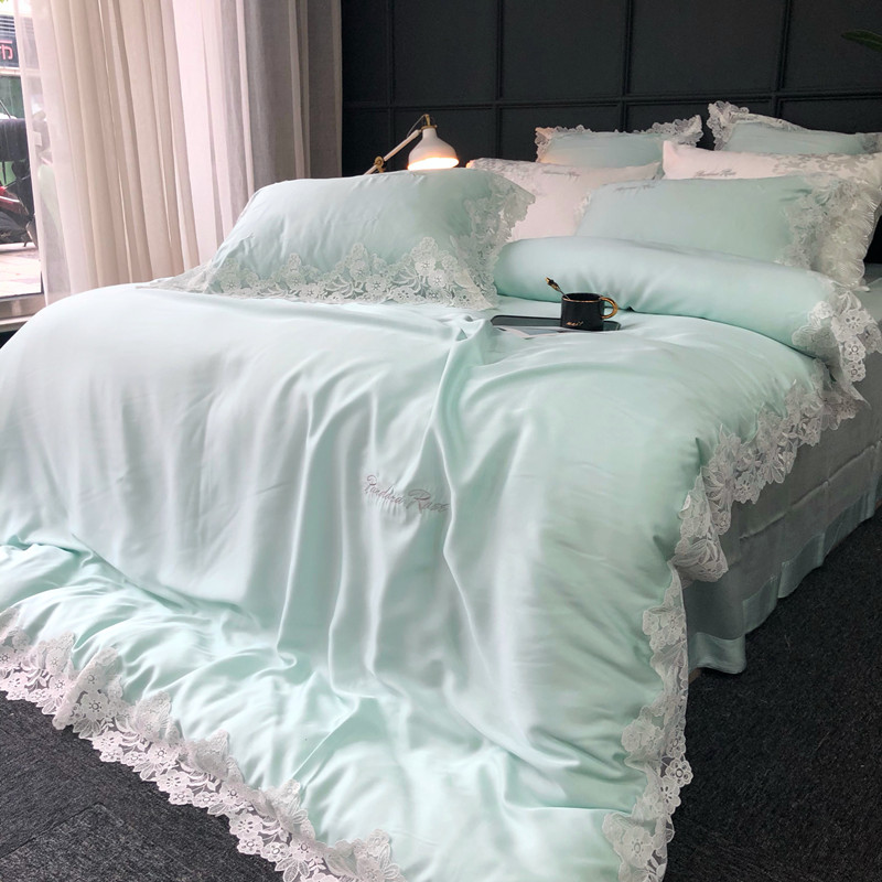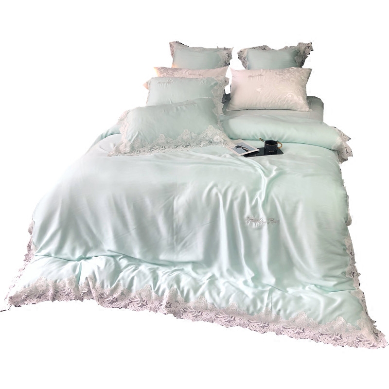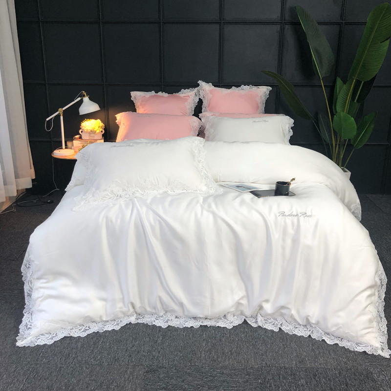 French Tencel Lace Four-piece Set European Princess Style Small Fresh Silky Naked Sleeping 1 8m Model Room Wedding Bedding