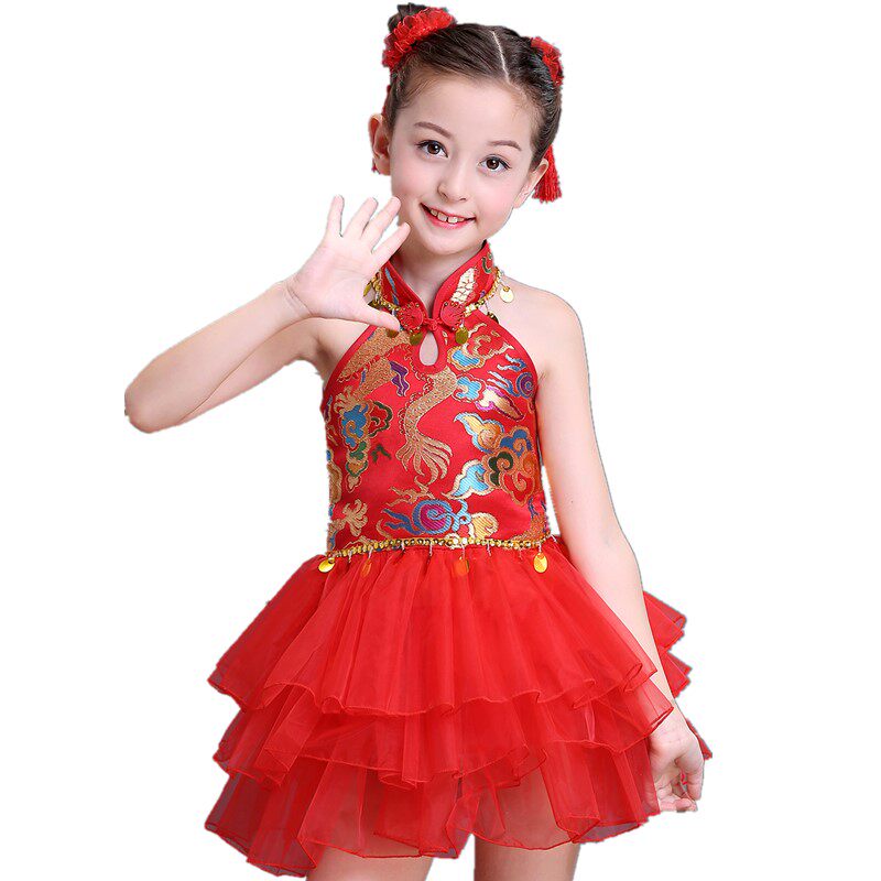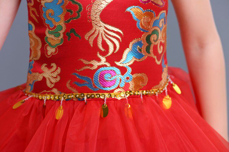 Children's Children's Chinese Knot Folk Dance Pupil Girl's Yangko Suit Handkerchief Dance Table Performance Costume Red Female
