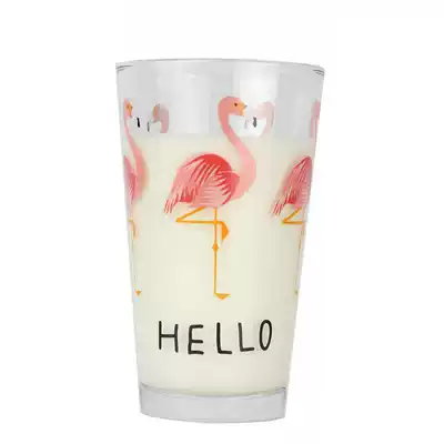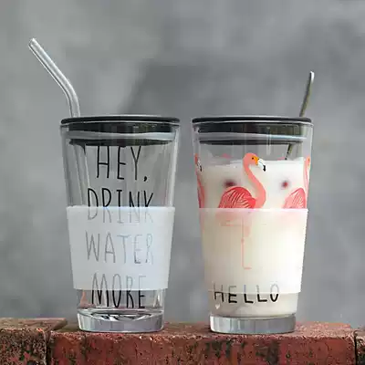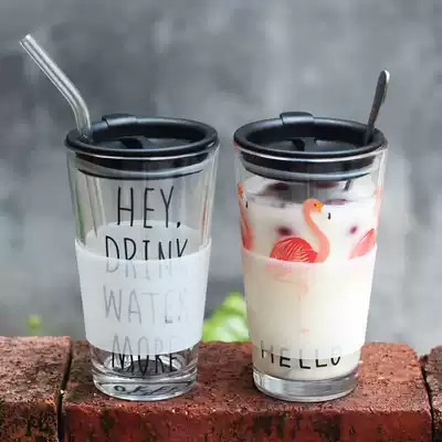 Japanese Net red glass water cup thickened flamingo milk breakfast cup coffee cup with lid spoon suction cup cold drink cup
