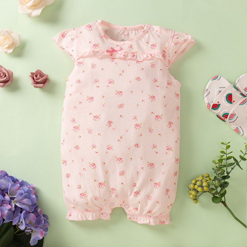 Female Baby Summer Dress Foreign Dress Baby Half Sleeve Flat Foot Open Crotch Khasia Woman Baby 1 4 Inches Sleeve Wrench Cuff