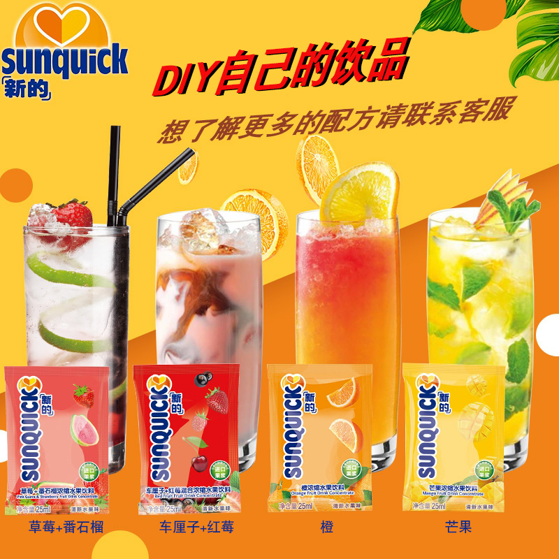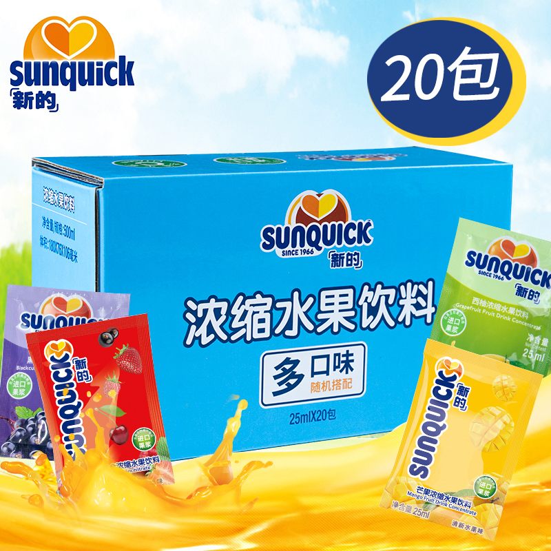 Sunquic's new fruit juice concentrate drink portable and ready to drink travel pack 4 flavours 25ml*32 packs *2