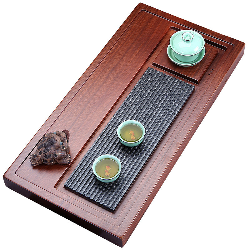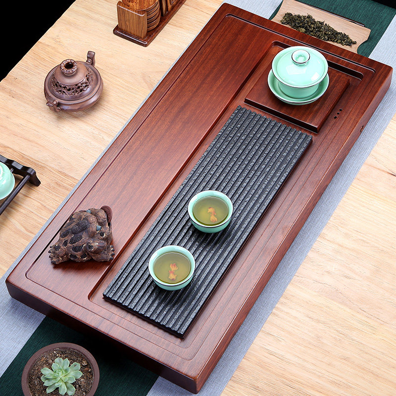 Senyu rosewood tea tray household whole solid wood tray drainage tea sea black stone small tea table