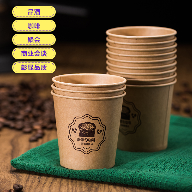 Disposable Kraft Paper Cup Coffee Cup Hot Drinks Cup Home Milk Tea Cup Exterior with packed cups Custom Commercial Home