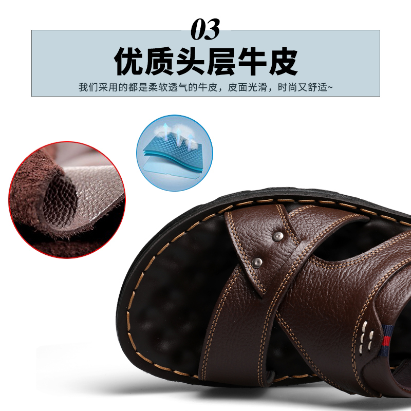 Men's sandals 2018 Summer new soft-bottom sandals Men's Korean version non-slip genuine leather beach shoes Men's sandals Slippers