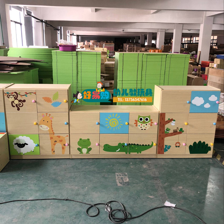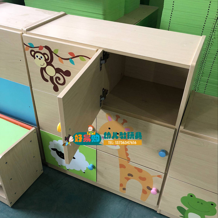 Kindergarten toy cabinet solid wood children's storage cabinet cartoon storage cabinet shelf simple bookcase bedroom finishing cabinet