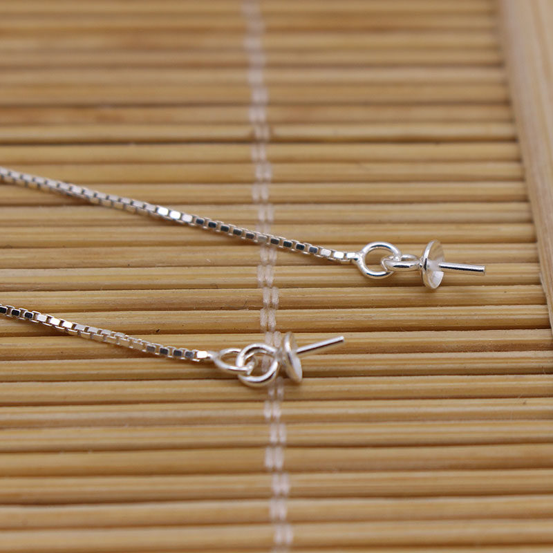 S925 Sterling Silver DIY Pearl Accessories Round Bead Pearl Ear String Box Chain Earring Accessories Air Holder Semi-finished Women