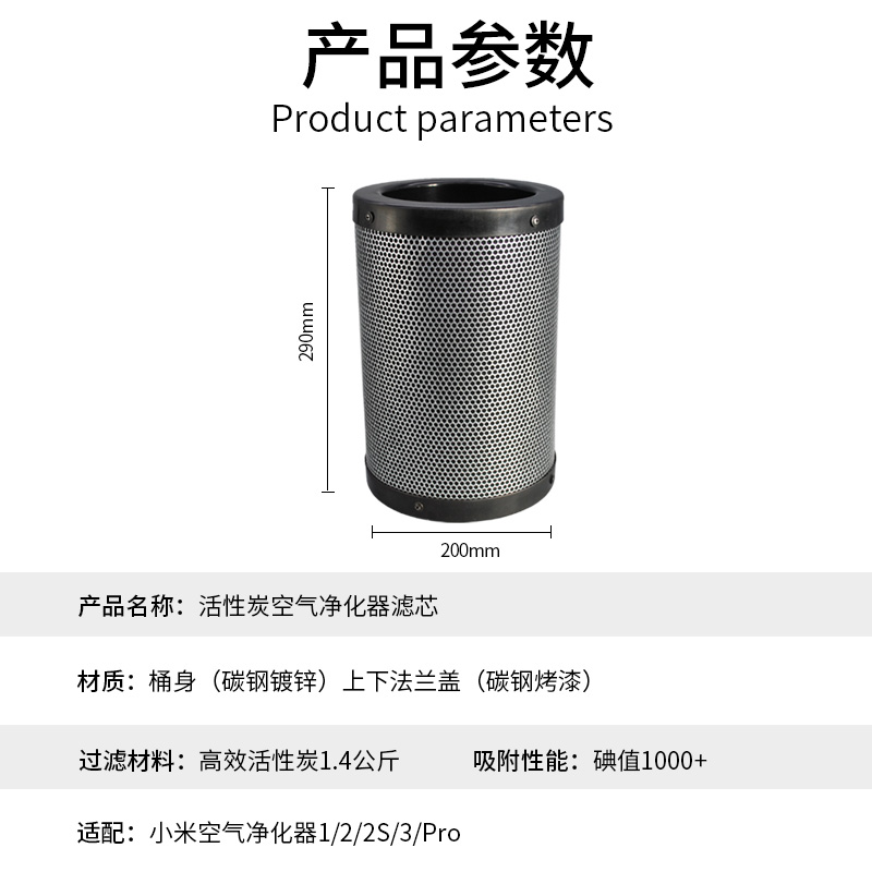 Active carbon air filter with RC412 carbon No. 1 metal filter empty barrel galvanized mesh baking varnish lid 2 metal filter empty barrel grey steel mesh galvanized lid No. 3 metal empty barrel can be inserted in original